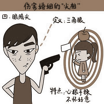 长有三角眼的人双眼就像三边形,双眼上端尖得比较突出,这类人也归属于婚姻生活欠佳的脸相,日常生活非常容易偏激的个人行为,阴狠的方式导致婚姻生活的不告而别。