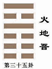 晋是继大壮卦深化表明怎样用(壮)的大道理。(白天黑夜三接)它是壮,都是阴阳调和的行为。上卦离为刚为明,下卦坤为柔为顺,阴上行下行而依赖于阳,阴得(晋)之法,故卦中四阴全是吉爻,这与大壮卦的观念大部分是相同的。来看《易经》创作者的旨意并不是无需(壮),只是应当怎样去用。应以柔求(晋),而并不是以刚求之。卦中2个阳爻,(九四)如鼠失之于刚,(上九,晋其角)刚之过旺,这全是不可用的。晋卦劝诫大家,要(晋)之有道,当条件成熟时,该奋发进取时还要奋发进取,要一往直前,别再犹豫,不必前俯后仰,更不必胡思乱想。